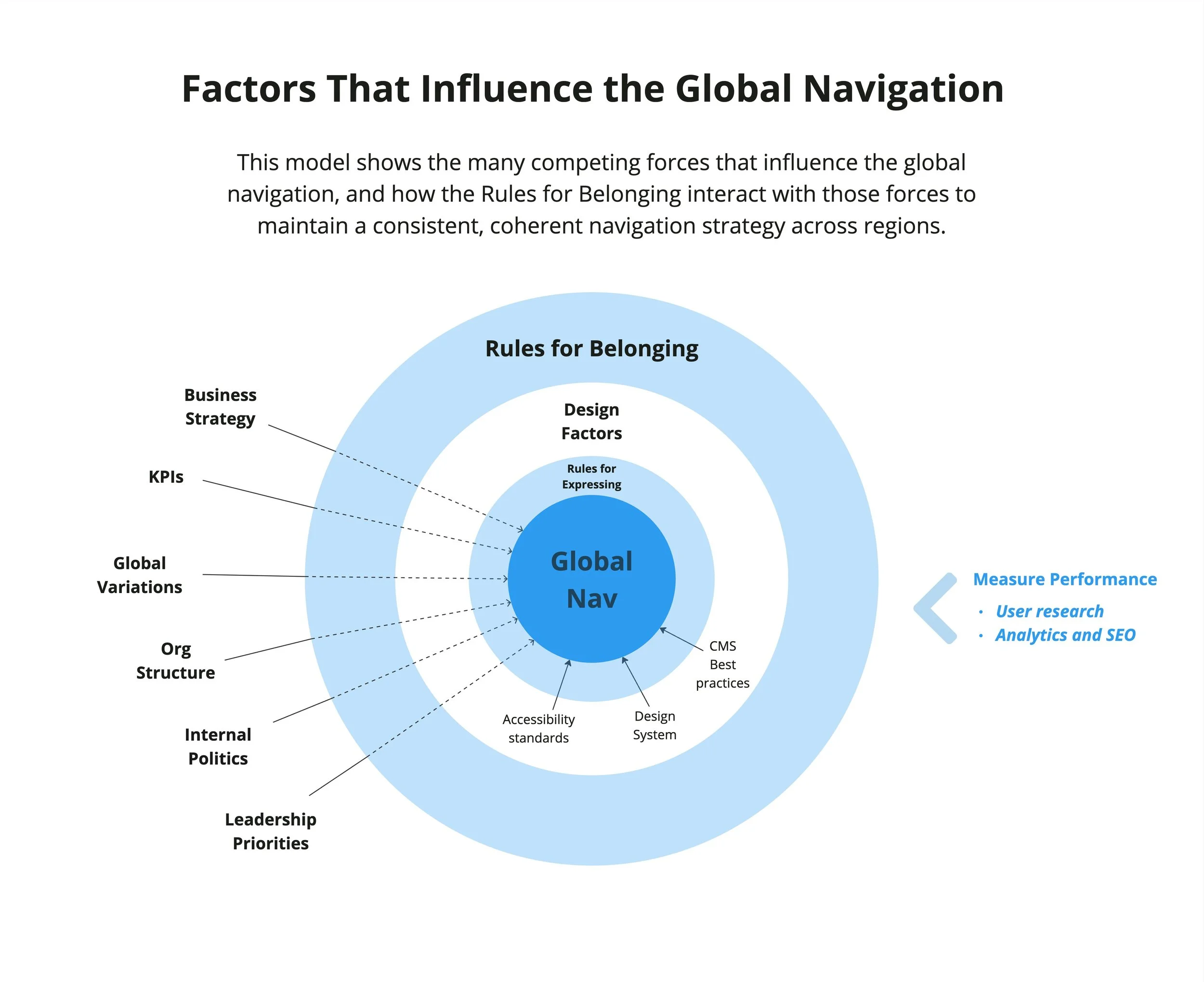 As the project lead, I successfully delivered a new navigation structure that could scale to meet the needs of regional markets while maintaining consistency. Our team also crafted a comprehensive set of “Rules for Belonging” that provide guidance for making decisions about the global navigation.