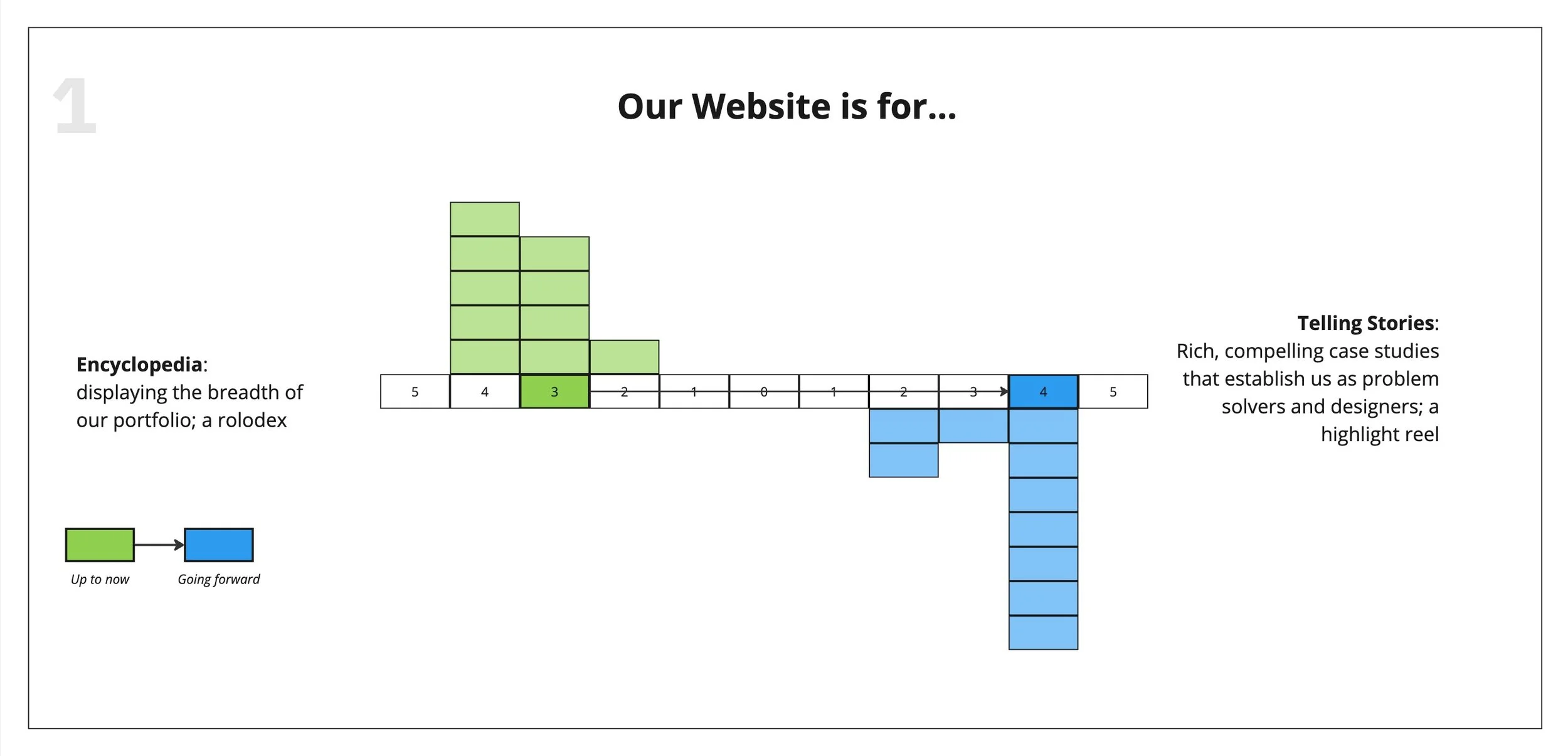 In the workshop, we presented stakeholders with six strategic tensions related to their website. We used these to facilitate a conversation around stakeholders’ vision and goals for the new website.