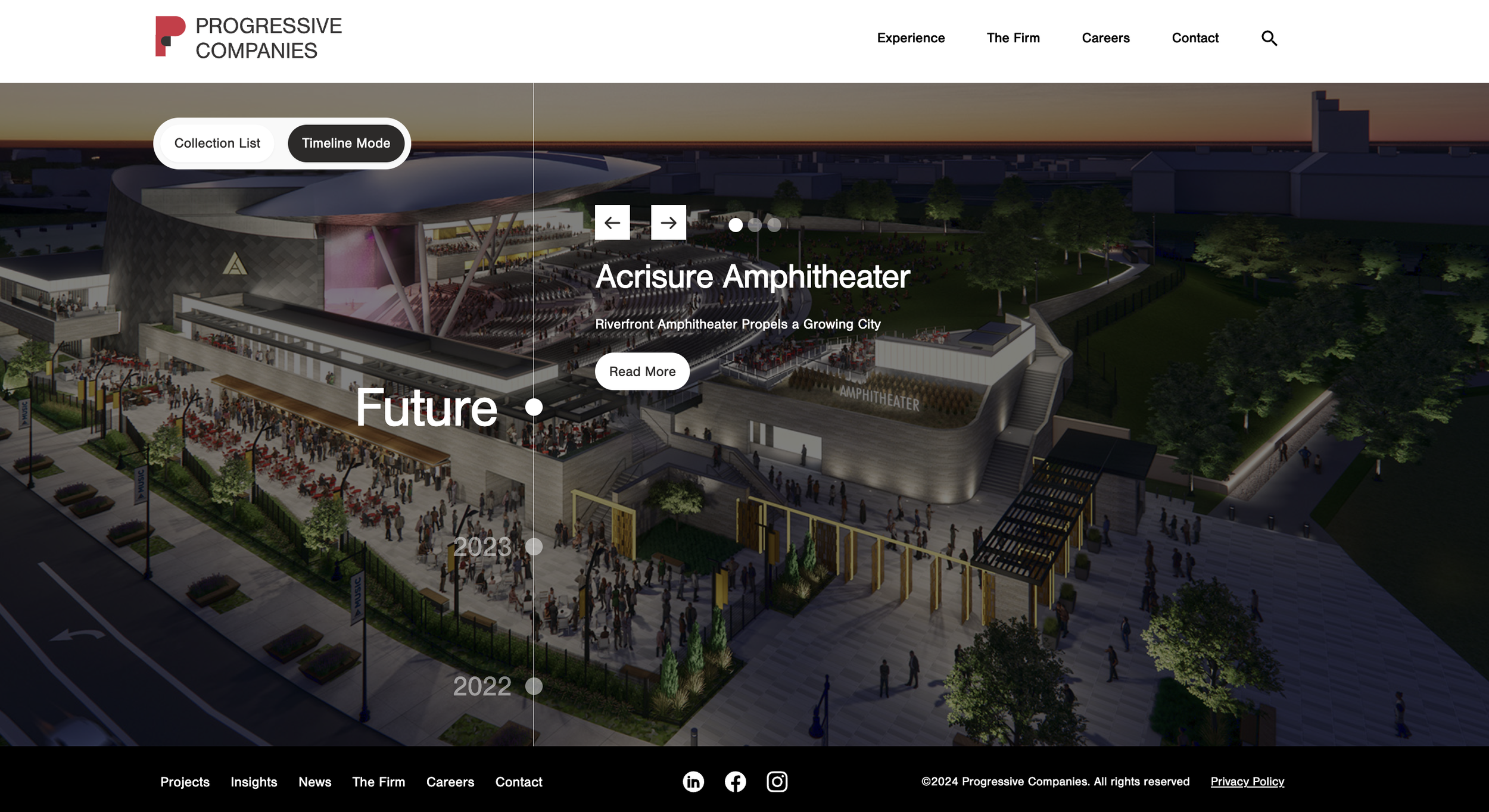 Progressive Companies (formerly Progressive AE) is an architectural and engineering firm based in Grand Rapids, Michigan that has significantly expanded their service offerings and national footprint. They needed a new website to showcase their expanding portfolio and attract talent.